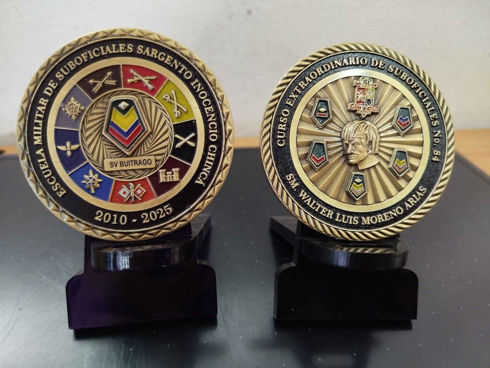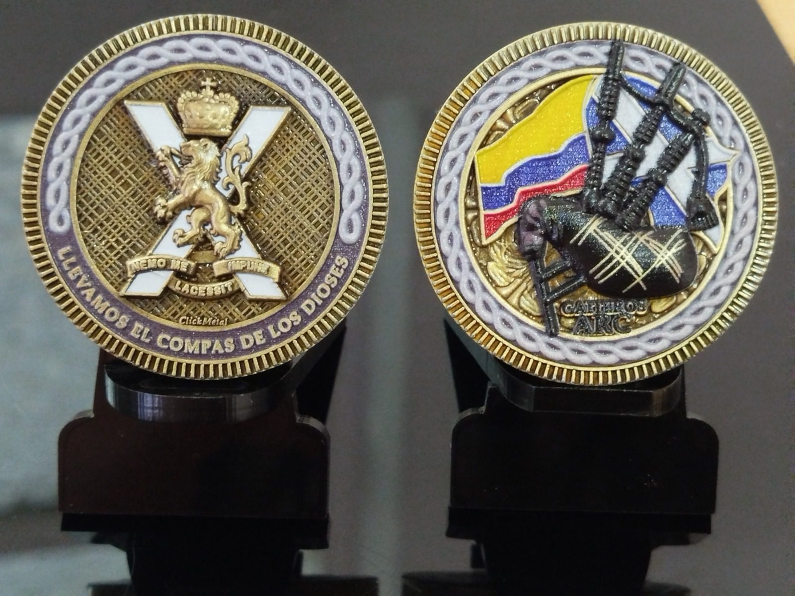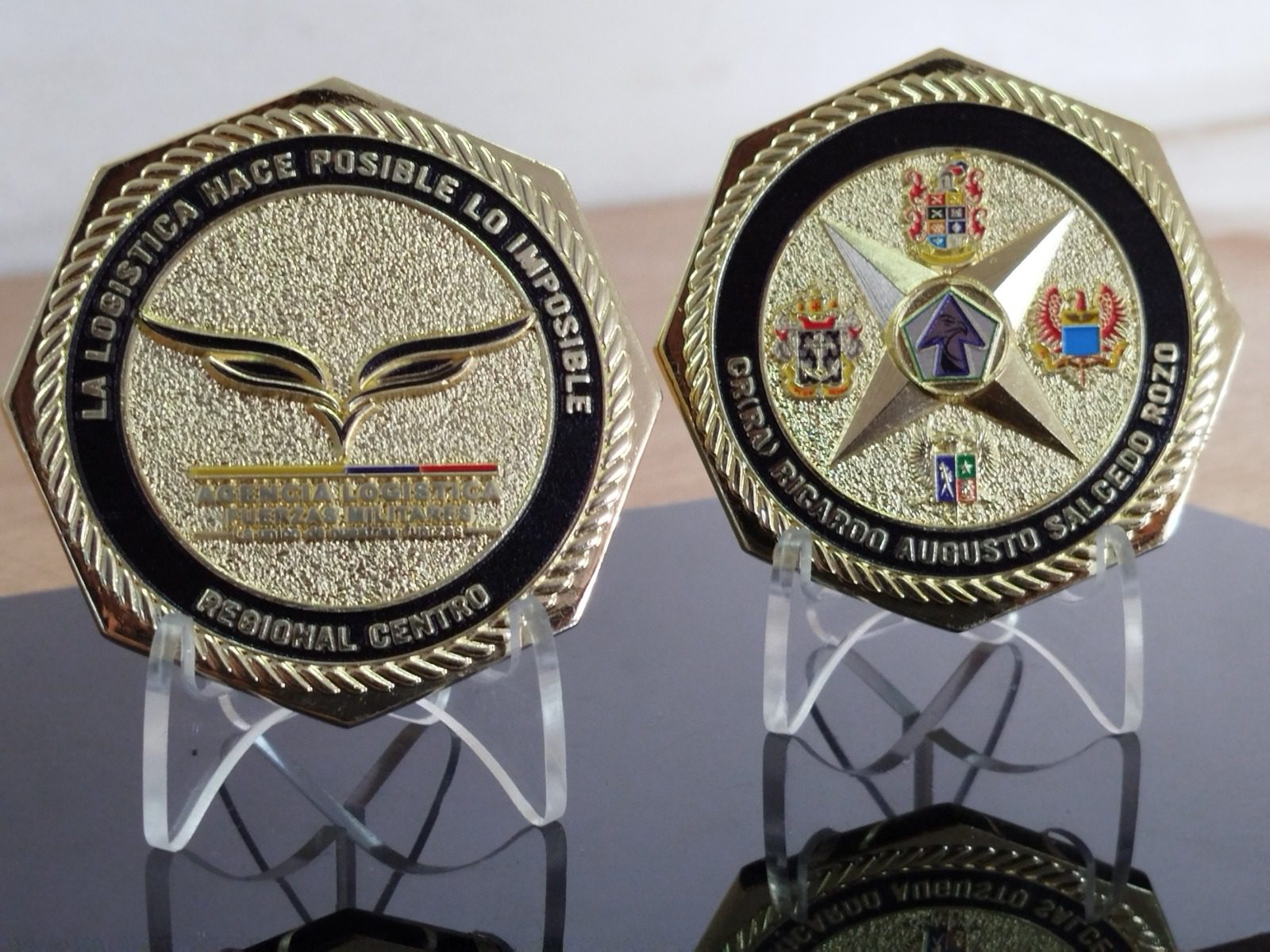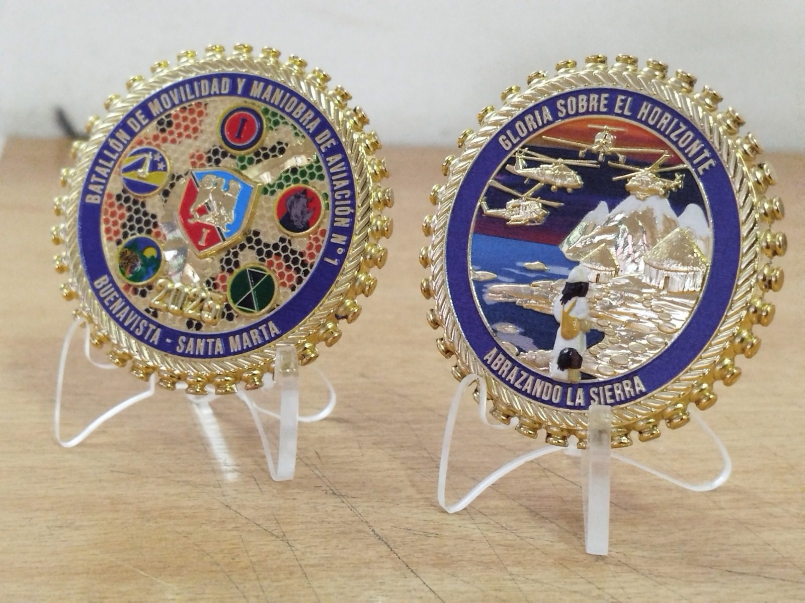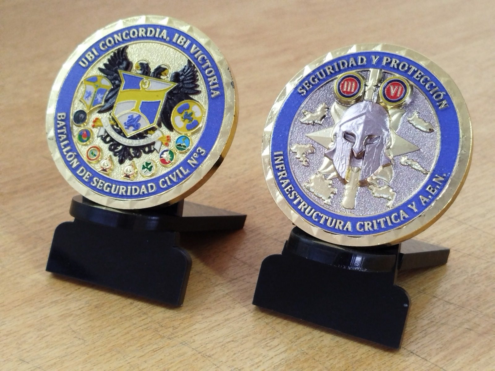 Símbolo de orgullo, logro y unidad en el mundo militar. Representan historia, tradición y pertenencia. En ClickMetal las fabricamos en aleación de cobre-zinc, con grabados y relieves detallados de alto realismo y excelentes acabados. Nuestros diseños  van desde la moneda en forma tradicional (redonda) hasta formas irregulares, las cuales dan un plus a la exclusividad.