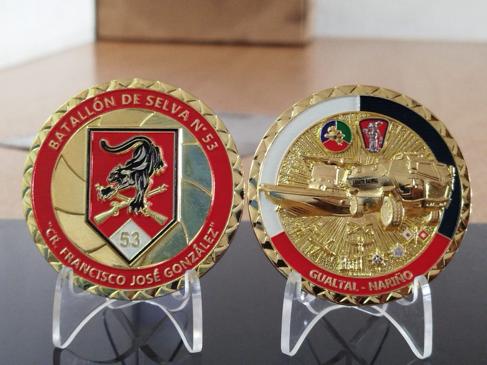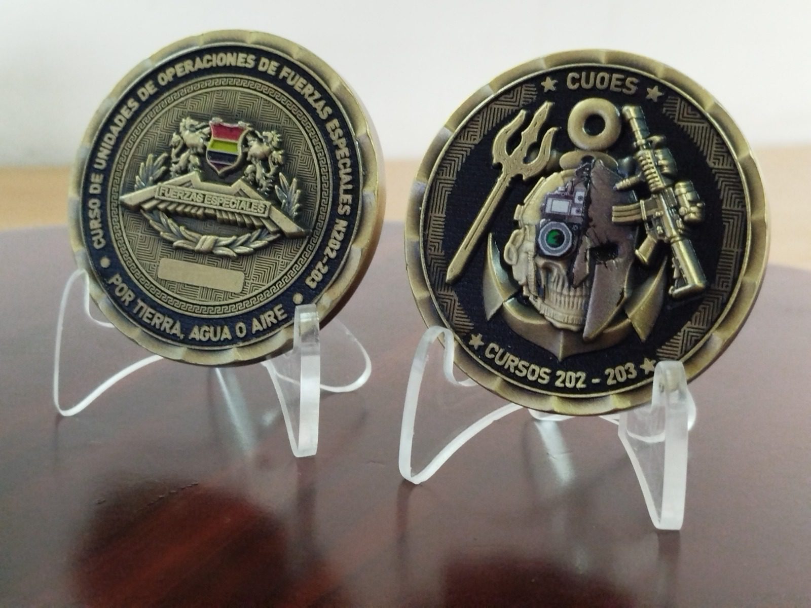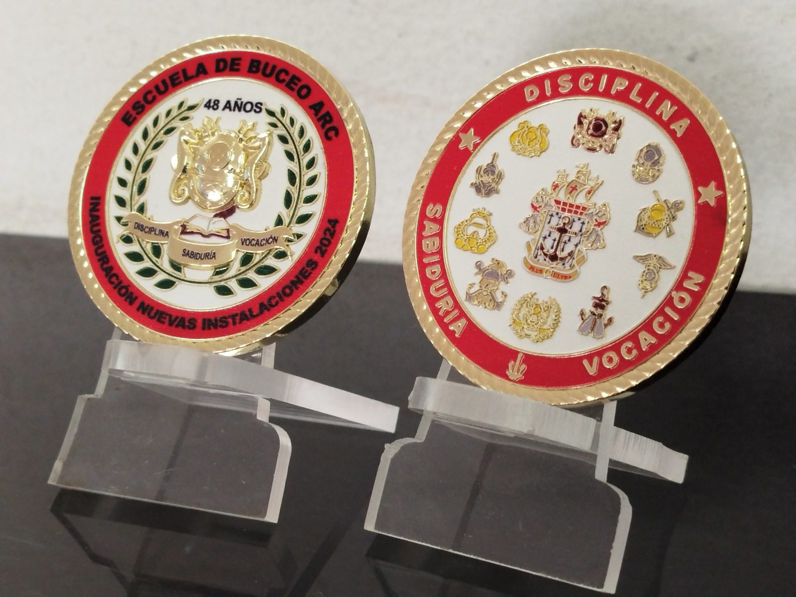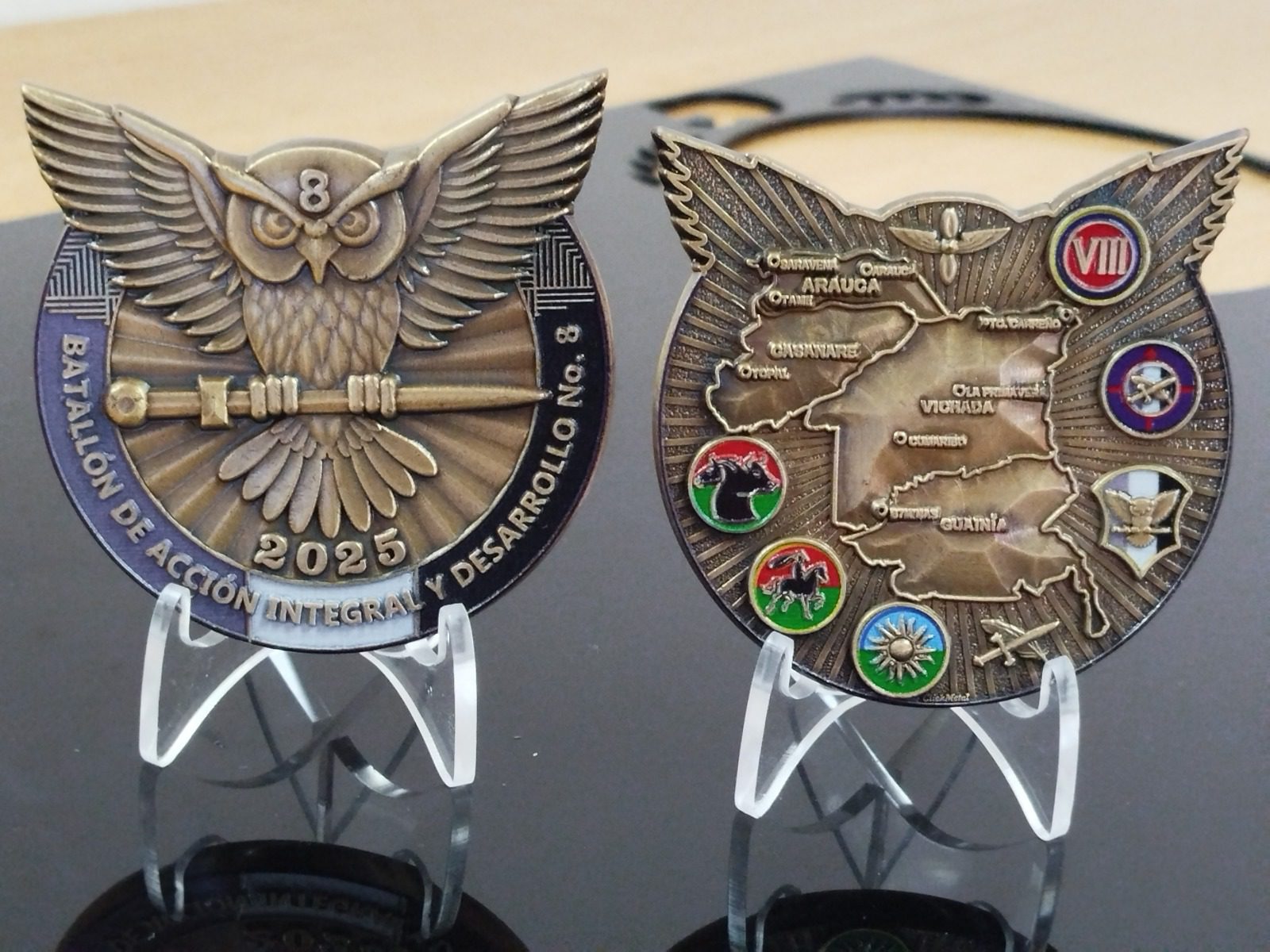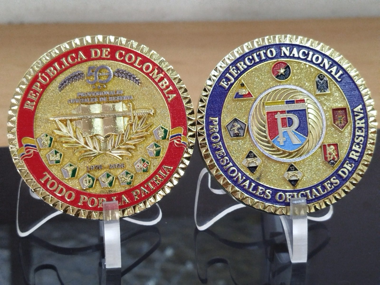 Símbolo de orgullo, logro y unidad en el mundo militar. Representan historia, tradición y pertenencia. En ClickMetal las fabricamos en aleación de cobre-zinc, con grabados y relieves detallados de alto realismo y excelentes acabados. Nuestros diseños  van desde la moneda en forma tradicional (redonda) hasta formas irregulares, las cuales dan un plus a la exclusividad.